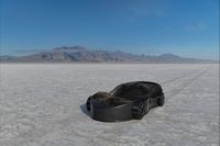 This 3D background presents the expansive Salt Flats near Salt Lake City, Utah. The vast, flat terrain, characterized by a textured sandy surface, stretches endlessly under a clear, brilliantly blue sky. The rugged mountains in the distance add a dramatic backdrop, making this background ideal for portraying off-road and all-terrain vehicles. The lighting in this environment is clear and sharp, capturing the intensity of daylight to cast crisp, well-defined shadows. This provides an excellent setting to highlight vehicle shapes and details in automotive renders. The unique, open landscape also lends itself well to creative product displays, conveying a sense of adventure and open possibilities.