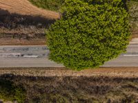 High-position aerial view of Portugal's roads amid clear skies. The rural landscape blends with contrails overhead. A typical sunny day in Europe, showcasing the picturesque Portuguese scenery.