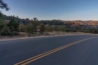 This image captures the serene beauty of a mountainous landscape as a person rides on the back of a motorcycle along an empty road. The clear sky and the dawn light create a stunning backdrop for the scene. The road, made of asphalt and tar, winds through the hills and vegetation. Majestic trees line the road, complementing the natural beauty of the surroundings. This photo represents the freedom and tranquility of exploring the outdoors on a motorcycle. Get inspired by the breathtaking views and embark on your own adventure on the open road.