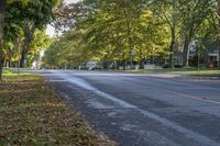 A scenic road in Ontario, Canada surrounded by lush green trees with colorful autumn leaves. The asphalt road winds through a peaceful residential area, providing a beautiful backdrop for a leisurely drive or a walk in nature. The clear sky and sunlight create a warm and inviting atmosphere. This idyllic suburban setting is perfect for enjoying the outdoors, whether it's a picnic in the park or a stroll along the tree-lined paths. The road surface is well-maintained, ensuring a smooth and enjoyable travel experience in this picturesque suburb of Ontario, near Toronto and Niagara.