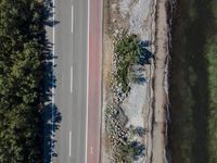 This aerial view captures an elevated, straight road running along the coastal landscape of Mallorca, one of the Balearic Islands in Spain. The high viewpoint allows a top-down perspective of the road as it traces its way through nature and offers a stunning view of the surrounding ocean. The asphalt road stands out against the natural beauty of the landscape, and this photo showcases the unique combination of the European coastal scenery and the architectural infrastructure. Experience the beauty of Mallorca and the Balearic Islands from this captivating aerial photograph.