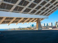 A stunning cityscape of Barcelona at dawn. The low-lying coastal city features modern architecture and high-rise condominiums. The clear sky reflects on the water, showcasing the beautiful blend of nature and urban design.