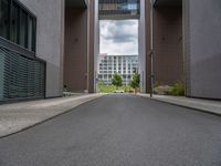 This stock photo captures a long paved street in the bustling city of Berlin. In the background, there is a tall modern office building, showcasing the city's urban architecture. The road stretches straight ahead, symbolizing the fast-paced city life and urban design. The bright blue sky and fluffy white clouds add a touch of serenity to this vibrant cityscape. This image beautifully represents the business district of Berlin, a hub of commerce and modernity.