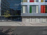 Shadows cast on asphalt roads reveal Berlin's modern architecture. Clear skies illuminate the business district, showcasing urban design in Germany's vibrant capital.