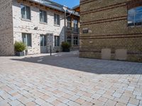 This image captures the beauty of Berlin, Germany. The classic architecture and brick walls showcase the city's rich history. The clear sky provides the perfect backdrop to highlight the intricate details of the buildings. In the foreground, a courtyard adds a touch of charm and tranquility to the urban landscape. The surface of the brick wall adds an interesting texture to the scene. Whether it's exploring museums, hotels, or warehouses, Berlin offers a unique blend of urban design and city life. This photo truly captures the essence of Europe's vibrant capital city.