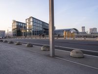 A stunning cityscape of Berlin, Germany at dawn. The modern architecture and concrete facades create a metropolis immersed in urban design. The mix of office buildings and headquarters dominates the metropolitan area. A clear sky adds to the beauty of this European city.