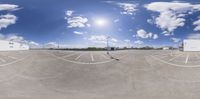 A straight road in Berlin, lined with modern architecture and industrial buildings. The clear sky contrasts with the concrete streets and parking decks. A glimpse into the bustling industrial scene of Europe.
