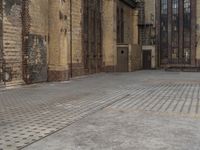 A classic industrial warehouse in Berlin, Germany. The rugged brickwork and concrete surfaces exude the city's urban charm. The open space and tiling create a floor of beige and shades, framed by wooden doors.