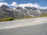 This stunning stock photo captures a bike rider on a mountainous road in Austria. The road surface is made of asphalt and winds its way through the picturesque landscape. In the background, snow-capped mountains rise against a clear sky. The bike rider is seen in profile, navigating the terrain with skill and determination. The highland plain offers a challenging and scenic route for the rider, with slopes and banks to conquer. The day is perfect for outdoor activities in nature, and the fluffy clouds add to the beautiful scenery. This image perfectly depicts the allure of Austria's European countryside for those seeking adventure and breathtaking views.
