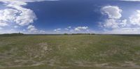Vast Brandenburg landscape with open spaces and greenery. The sun visible in the clear sky, casting a sunny glow on the grass surface. A typical sunny day in Germany.