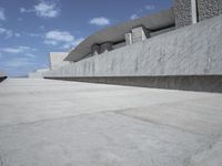A modern architectural masterpiece in Tenerife, Spain. This low concrete building with futuristic design stands against a clear sky. The open spaces and linear lines create a monument of Brutalist architecture in Europe.