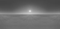 A calibrated and colour accurate RAY HDRi Map captures an open space with the sun visible on a clear sky. The natural grey tones of the landscape complement the vibrant sun and the sunny atmosphere of the day.