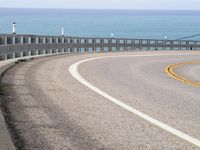A scenic drive along the Pacific Coast Highway in Big Sur, California. The road winds along the coastal cliffs, with the sparkling water of the Pacific Ocean below. The iconic guard rails and bridges add to the beauty of this coastal landscape.