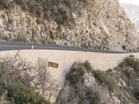 a person riding on the back of a motorcycle down a winding road next to some cliffs