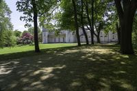 A lush and green landscape in rural Ontario, Canada. The historic architecture of a castle stands tall amidst the forest. Gravel roads wind through the scenic countryside, surrounded by trees and vegetation.