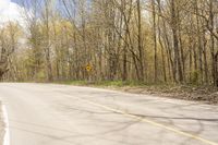 A picturesque landscape in Ontario, Canada. The asphalt road curves through lush green vegetation, with trees and branches lining the path. The natural environment is complemented by a cloudy sky. Perfect for a day trip in Toronto.