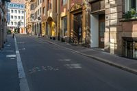 Classic architecture in the charming city of Strasbourg, France. Shadows cast by storefronts add depth to the urban landscape. A bustling street with restaurants and shops, showcasing the vibrant urban design of the city.