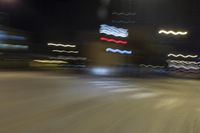 This is an image of a city street in Chicago, Illinois, USA at night. The road, made of asphalt and concrete, is illuminated by artificial street lights that create streaks of light. The motion blur effect adds a sense of movement and energy to the image. The urban design of the thoroughfare is complemented by the dark, night sky and the clouds overhead. This photo captures the essence of city life and the bustling urban infrastructure. It showcases the dynamic and lively atmosphere of Chicago at midnight.