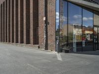 A modern office building in Berlin, Germany. The glass windows and brick facade create a striking architectural design. The bustling city life contrasts with the peaceful courtyard. A perfect blend of urban design and European charm.