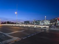 A cityscape of Berlin, Germany at dawn. The modern architecture and city lights create a vibrant urban atmosphere. The clear sky and artificial lights illuminate the streets and highlight the beauty of the city. Experience the vibrant city life of Berlin in Europe.