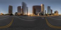 a view of the city from an intersection in this time lapse camera lens image