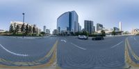 an image of a 360 - view image on a city street from inside a fisheye lens