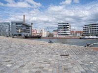 Cityscape of Bremen, Germany with Gray Cobbled Road Next to Buildings and Boats