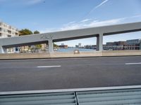 This stock photo showcases the vibrant city life of Holland, Netherlands. The modern architecture, including beautiful office buildings and sleek bridges, is illuminated by the bright day sunlight. The roads and thoroughfares, made of asphalt, provide easy access to the city's bustling business district. The urban design and infrastructure are well-maintained, creating a seamless flow of traffic for various modes of transport. Clouds fill the sky, casting shadows and adding depth to the cityscape. In the distance, a harbor with piers and jetties can be seen, offering a connection to maritime activities. This cityscape encapsulates the progressive and thriving atmosphere of Europe's architectural hub, Holland.