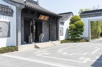 A classic villa in the heart of Shanghai's old town. The historic architecture and courtyard create a charming urban oasis. The clear sky adds to the beauty of the classic architecture and tree-lined walkways.