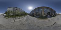 an upside down view of an industrial park in the middle of nowhere with a sun shining