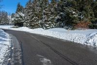This is an image of a snowy street corner in a suburban area of Toronto, Ontario, Canada. The clear sky above contrasts with the snow-covered roads and evergreen trees. The residential buildings in the background represent the suburban lifestyle of the area. The photo captures a typical winter day in Toronto, with the surface covered in snow. The image illustrates the peaceful and serene atmosphere of a snowy suburban neighborhood in Ontario, Canada.
