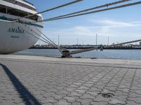 A picturesque view of Bremen's harbor and jetty. Clear skies complement the calm water of the lake. Naval architecture lines the shoreline, while boats and vehicles traverse the road surface. A serene day in Bremerhaven, Europe.