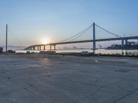 This image captures the beauty of San Francisco during sunrise. The city is framed by the coastal waters and the open space of the ocean. The residential areas blend with the city's urban design, creating a unique skyline. The sun is visible above the horizon, casting a warm glow on the streets and bridges. In the foreground, a river flows towards the ocean. The city's industrial areas, including factories and nonbuilding structures, are also visible. This photo represents the vibrant city life of San Francisco, with its mix of natural beauty and urban development.