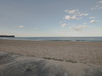 a man rides a skateboard on the beach in front of the water and the ocean