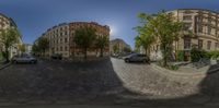 a picture of a street taken from the ground up with a very circular lens at one end