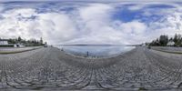 a photograph of a walkway that leads to the water with a lot of cobbles