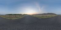 Colorado Dawn: Sun Setting over a Field with a Road
