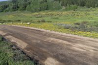A lush green landscape in Washington Gulch, Colorado. The elevated dirt road winds through the high mountains, surrounded by dense forests. Ideal for recreational activities, off-road tracks, and nature exploration. Crested Butte, USA is the perfect destination for outdoor enthusiasts.
