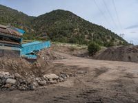 A picturesque Colorado landscape with open spaces and construction in the distance. The sky is filled with clouds on a sunny day. The natural elements of dirt, gravel, and sand create a unique surface.
