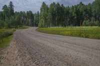 a road going through an open field and trees around it, in the wilderness of the countryside of colorado