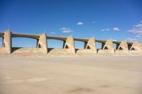 a concrete bridge in the middle of nowhere, under a cloudless blue sky at the bottom