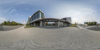 A curved driveway in Toronto on a clear day. Trees line the path, while a traffic light stands in the background. The modern architecture of nearby buildings adds to the urban landscape.