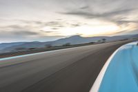 A race track in the USA at dawn, with asphalt roads curving around the cloud-filled sky. The break of day sets the stage for thrilling races on this iconic track.