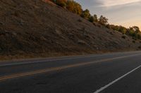 This image captures the serene beauty of a rural road at dawn. A motorcycle can be seen riding down the empty highway, surrounded by lush vegetation and trees. The road surface, made of asphalt and tar, stretches into the distance, disappearing into the rolling hills. The sky is adorned with clouds, adding depth and texture to the scene. This tranquil setting represents the beginning of a new day, with the break of day casting a warm glow on the landscape. Experience the freedom of riding through nature on this peaceful road.