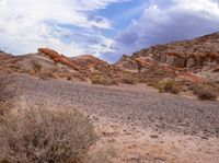 Desert Landscape with Rocks and Vegetation under a Cloudy California Sky