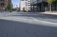 A view of a modern cityscape in downtown Denver, Colorado. Straight down the road, the low-rise buildings and residential areas reflect on the asphalt road surface. The urban design and architecture showcase the vibrant city life in Denver.