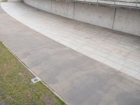 This image captures a modern architectural marvel in the heart of Berlin, Germany. The skate ramp in the stadium showcases the city's urban design and vibrant city life. As the skateboarder glides down the empty slope, the grassy surroundings provide a pleasant contrast to the concrete, asphalt, and composite material surfaces. The elevated ramp is a high and rectangular structure, blending elements of wood, flooring, and brickwork. This photo perfectly encapsulates the intersection of modern architecture and vibrant urban culture in Berlin, Europe.
