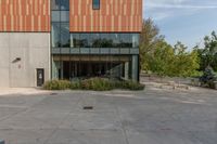 This image showcases the urban design of a suburban neighborhood in Toronto, Canada. The photo depicts a high-rise building against a clear blue sky with clouds. The windows reflect the daylight and create hard shadows on the road surface below. The surrounding open spaces provide a contrast to the densely populated land lots. This picture illustrates the mixture of residential and commercial fixtures in the area. With its elevated perspective, it offers a glimpse into the everyday life of the suburban community in Toronto.