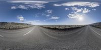 two road splits in the middle of an empty desert plain as the sun rises above