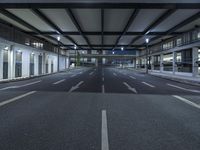 This stock photo shows an empty street in Berlin, Germany at night. The modern architecture, including bridges and underpasses, can be seen along the straight road. The dark sky provides an atmospheric backdrop to the city's metropolitan area. The road surface, made of asphalt, is illuminated by artificial lights. The metal structures and parking lots add to the urban infrastructure. This image perfectly captures the urban vibe of Berlin, a city known for its unique blend of history and modernity. Europe.